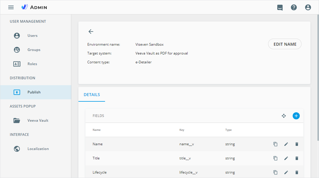 For the Veeva Vault as interactive publish type, you can also configure the field mapping to ensure correct transfer of the eWizard content and metadata to Veeva Vault PromoMats.