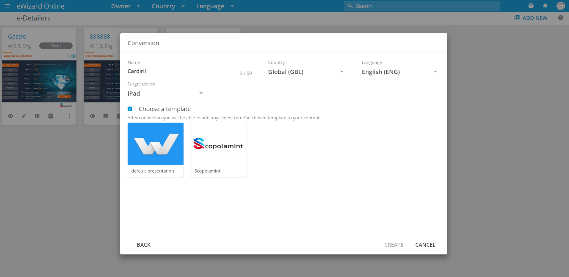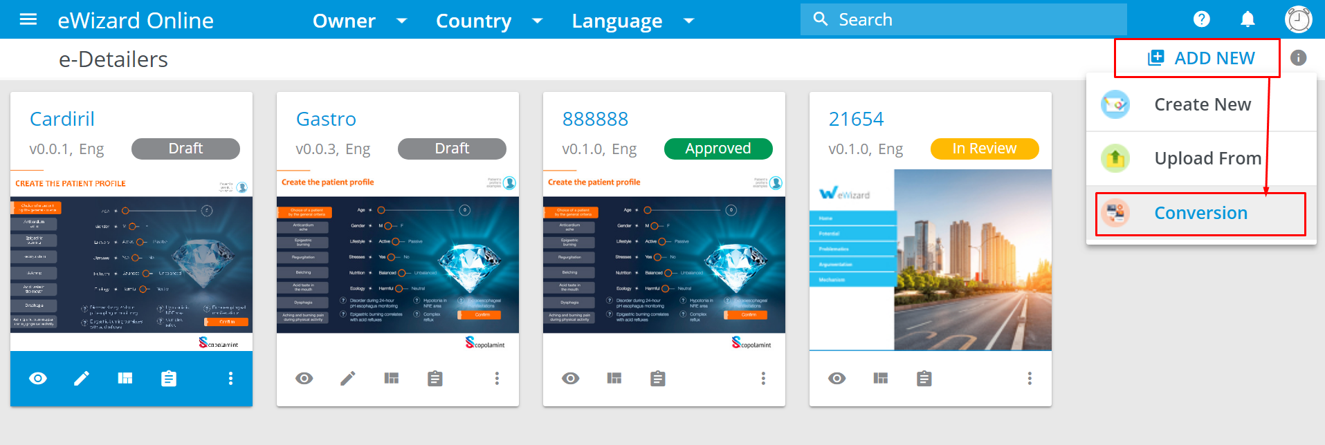 Your new converted presentation appears in the e-Detailers list. It will be as available for all the operations, as any other presentation.