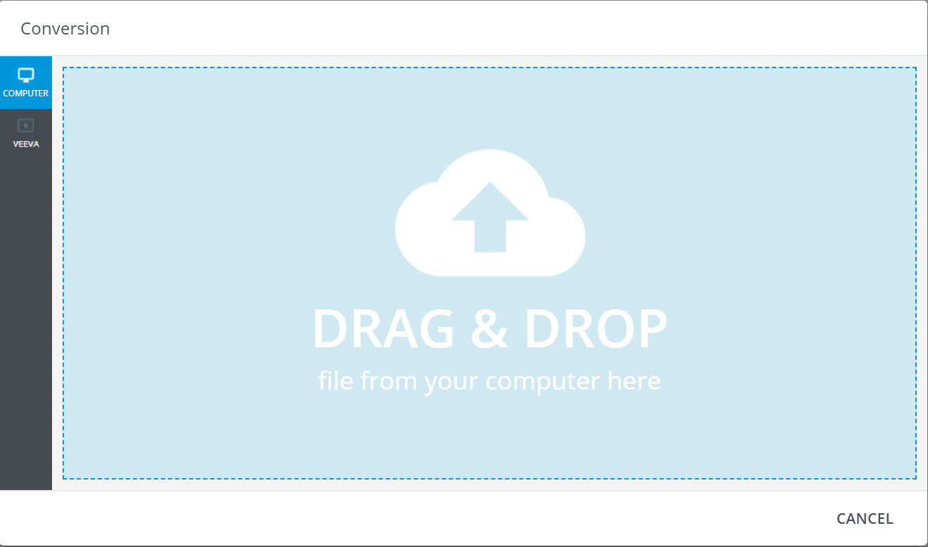 - Drag the required file and drop it into the blue area of the pop-up that appears (or click it to open the file explorer, where you can select a file):
