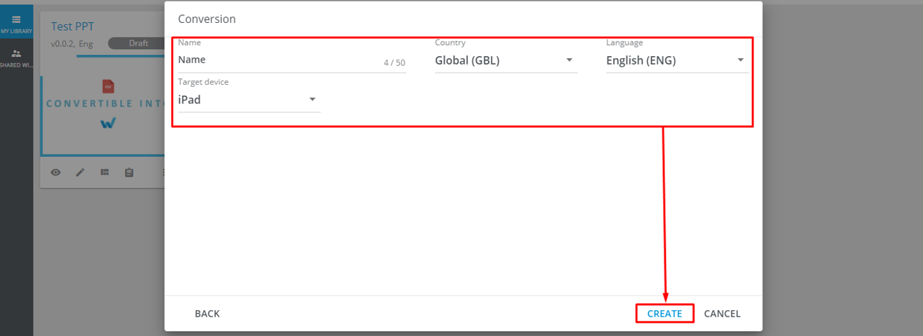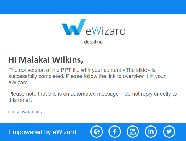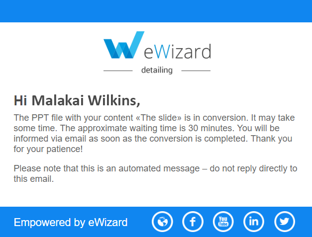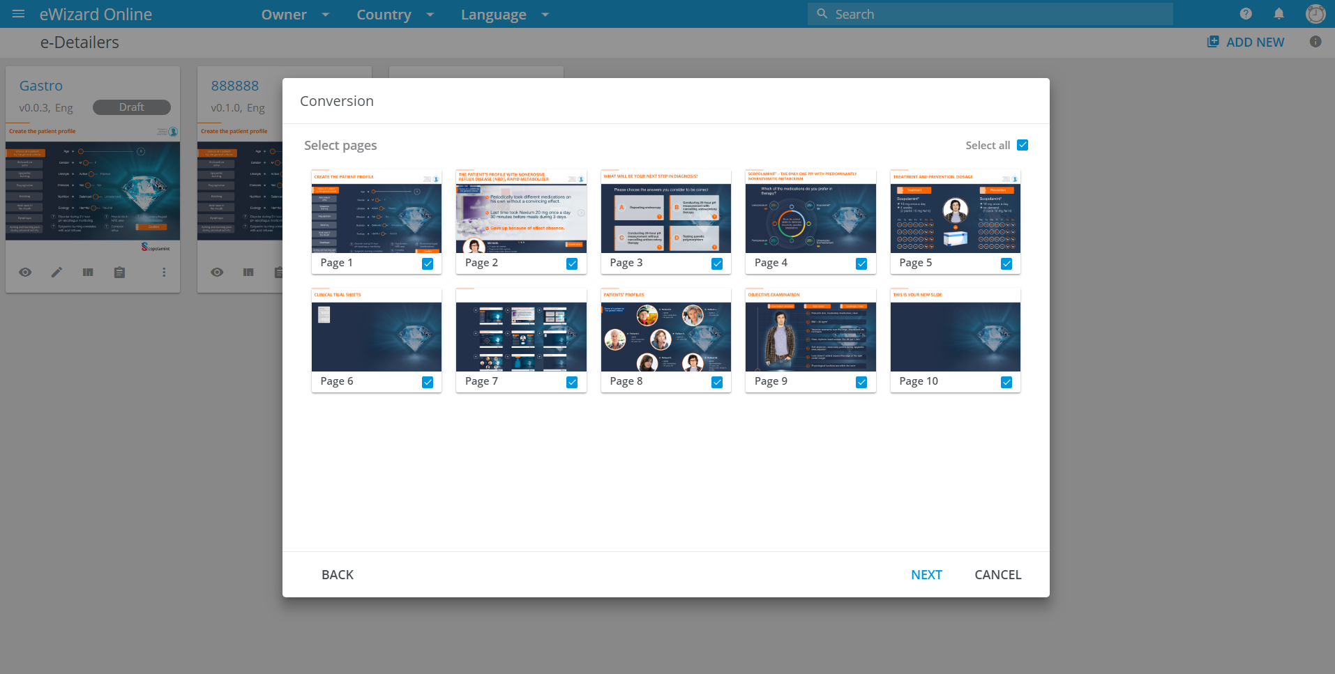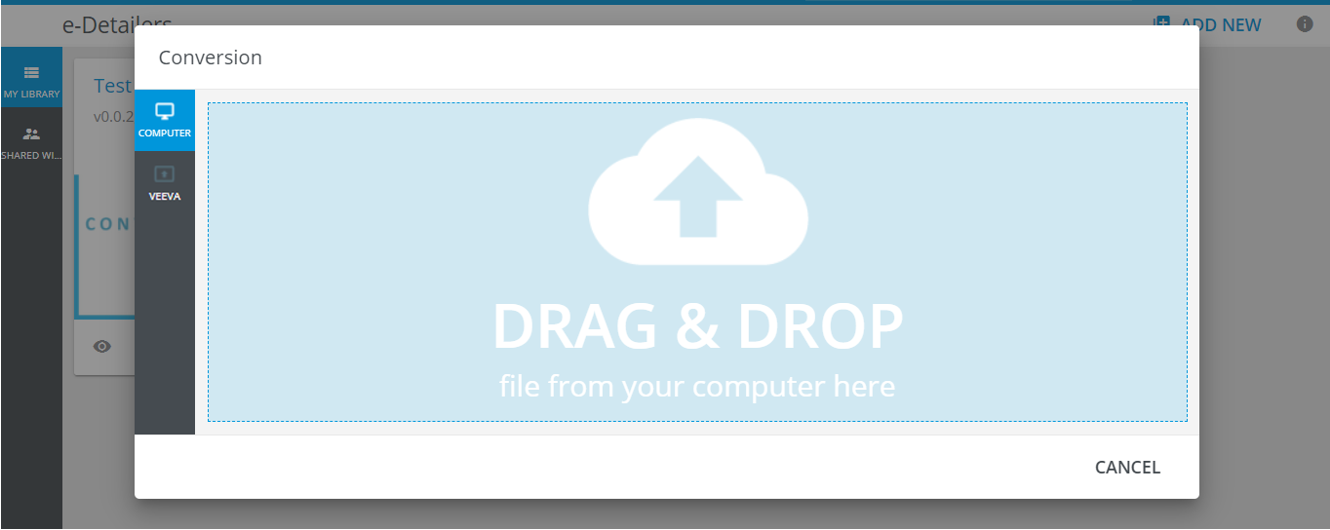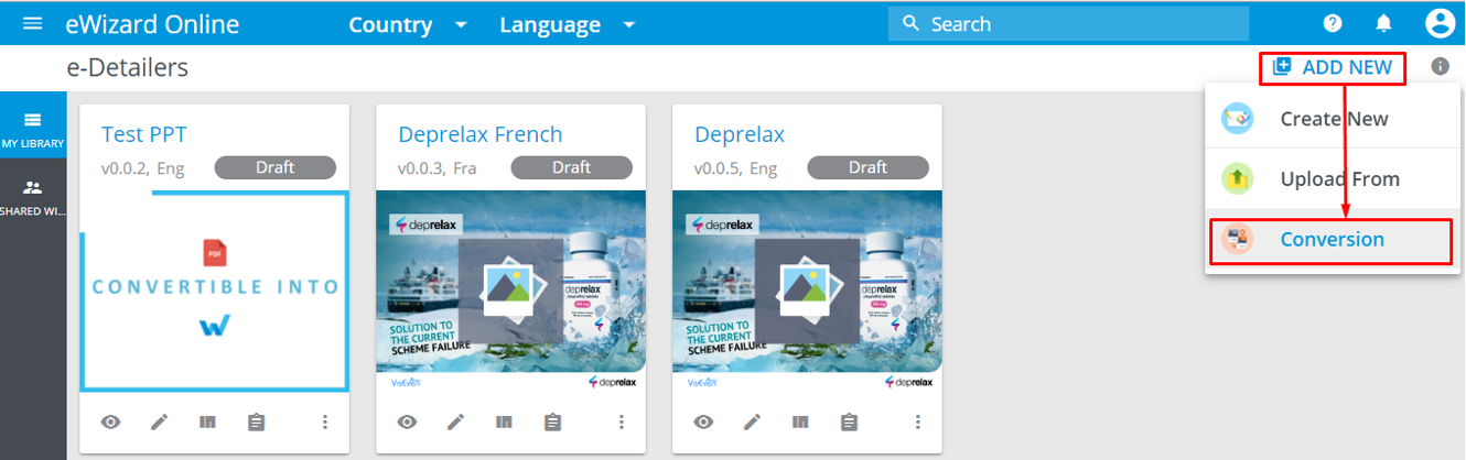 You can convert a presentation from a PDF or PPTX files into the HTML5 format supported by the eWizard platform. To do so: