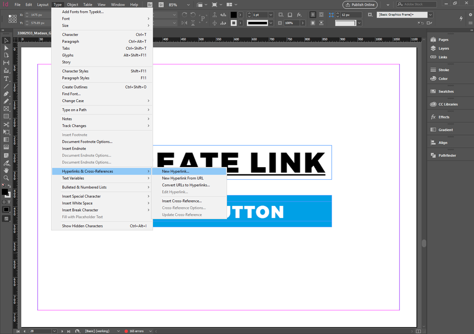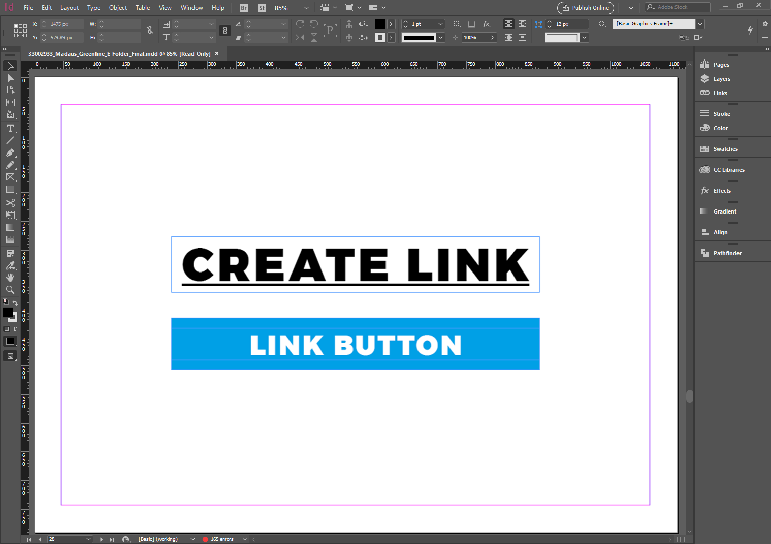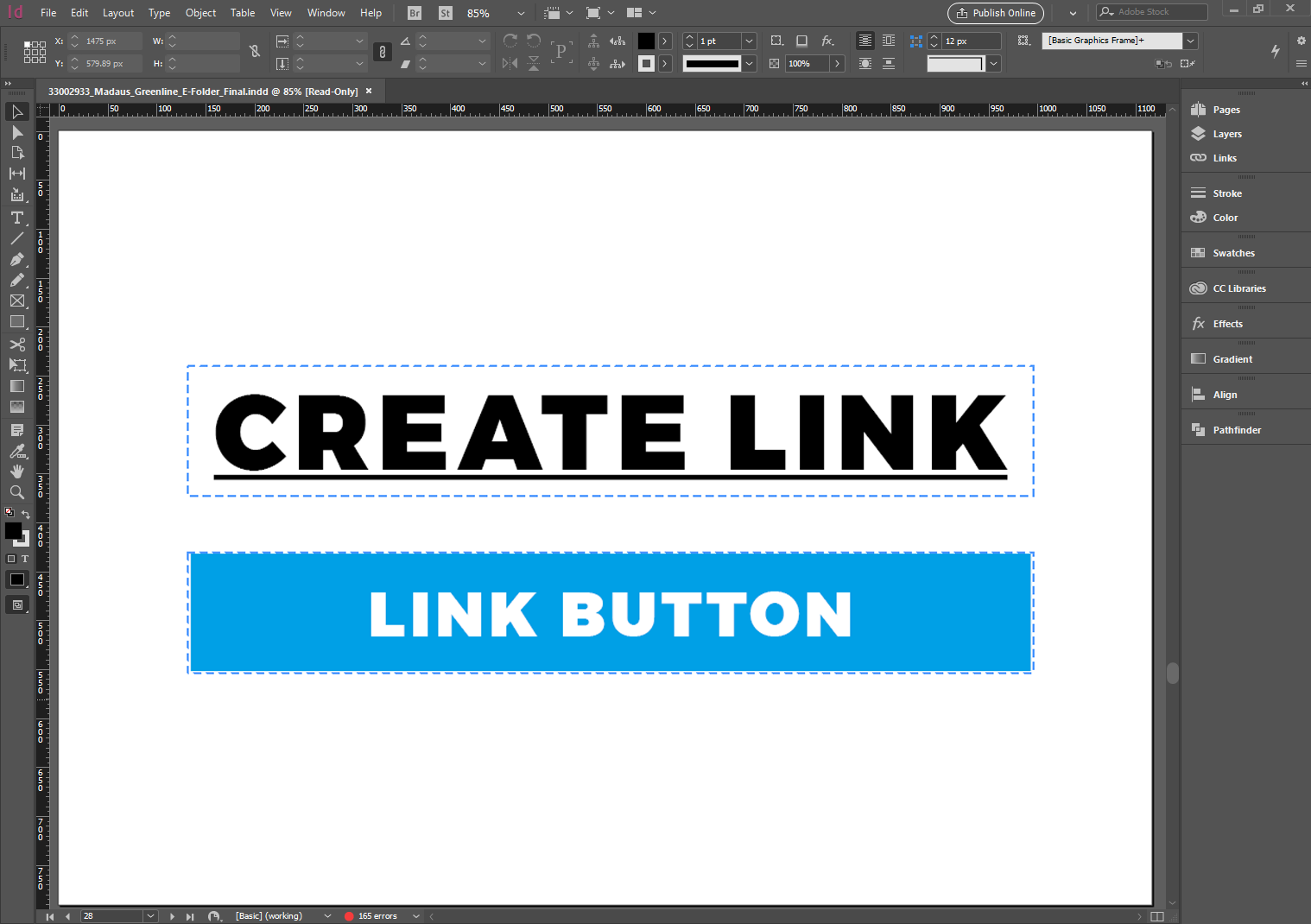 To add a hyperlink to a text block, a piece of text, or a group of elements (e.g. a plate or a button), first you need to create the element to attach a link to.