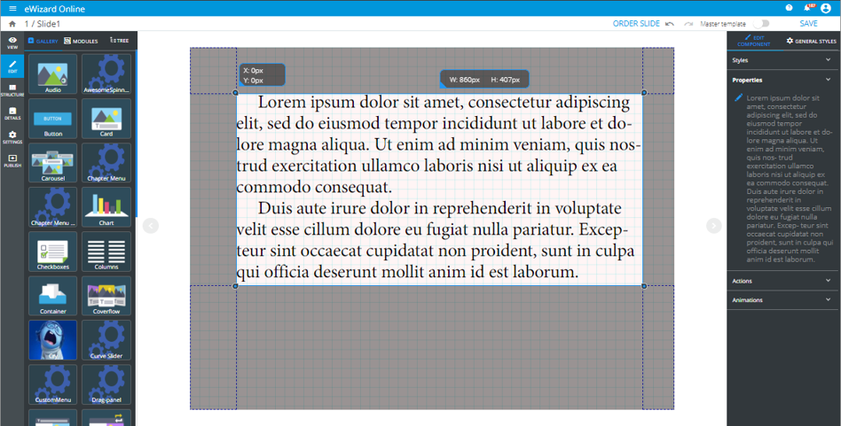 Keep in mind that eWizard doesn't support transparency in the text components.