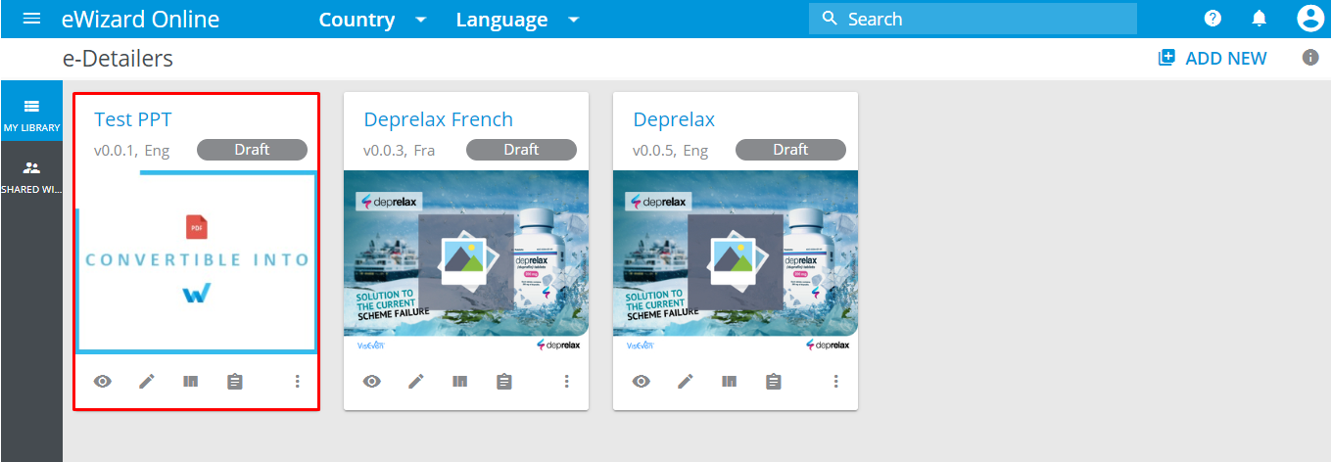 - Your presentation appears in the e-Detailers Library with animations saved.
