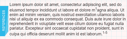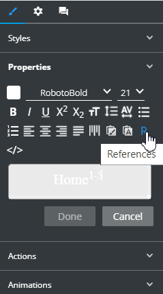 The text component with the references now contains superscript figures indicating reference numbers in the list: