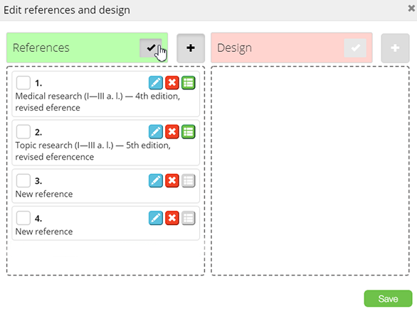 - Create the list of references, using the following buttons: