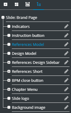 Each slide contains a list of references and design records attached to the text components on this slide:
