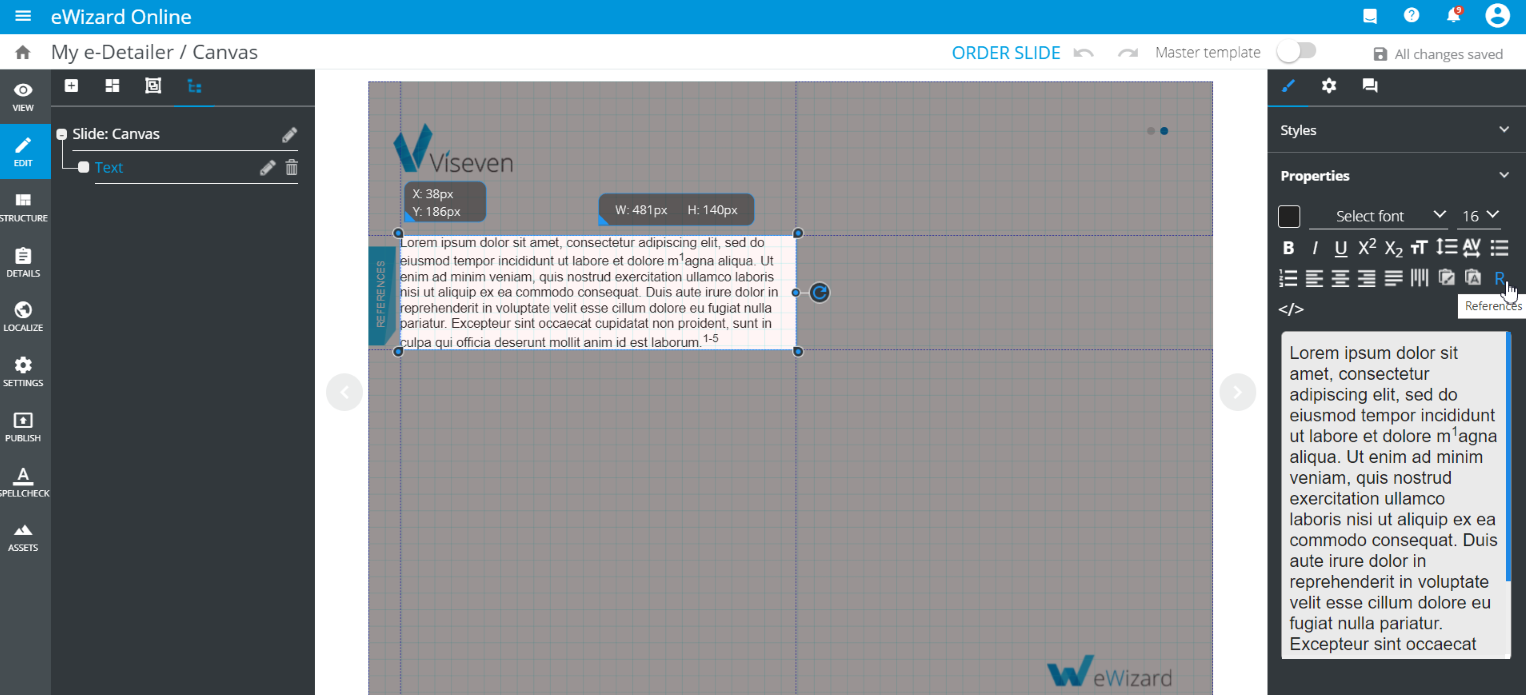 To support the information provided in your e-Detailer with reference sources, you can create a list of references and attach them to the required text components.