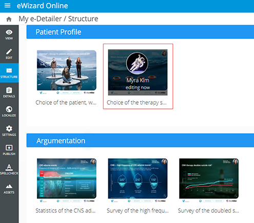 e-Detailer Structure allows you to add/delete/reorder chapters and slides of your item. This functionality is available only for the items in the Draft status.