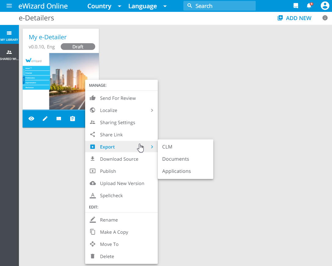 eWizard Export is at your fingertips for this need. It allows for creating dedicated builds based on your e-Detailers. This build is fully compatible with the target system and is formatted accordingly. Once generated, it is placed online visible for you only and available for download by the unique link.