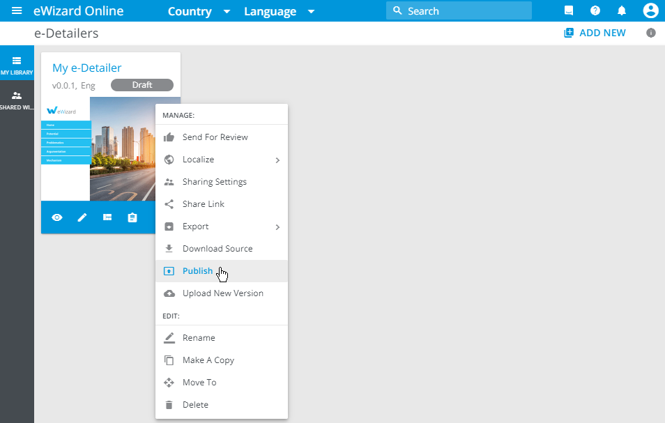 To publish an e-Detailer: