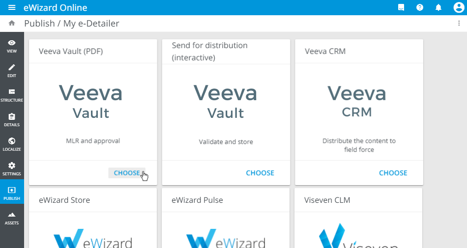 With the Publish service, you can send your e-Detailers to the target systems with the minimum human operation and work with them further in the target systems.