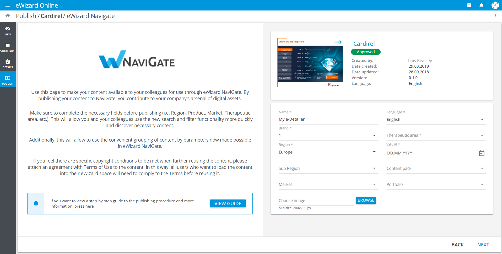 Fill in the required fields in the eWizard NaviGate Publish form. On this step, you can also upload a cover image for your item: