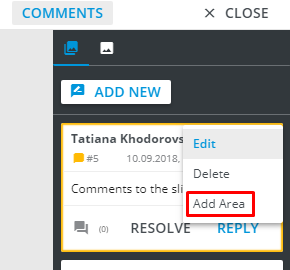 Add/Remove Area adds or removes the area related to the given comment (these options appear in More options menu by rotation, based on occurence of such an area on the slide).