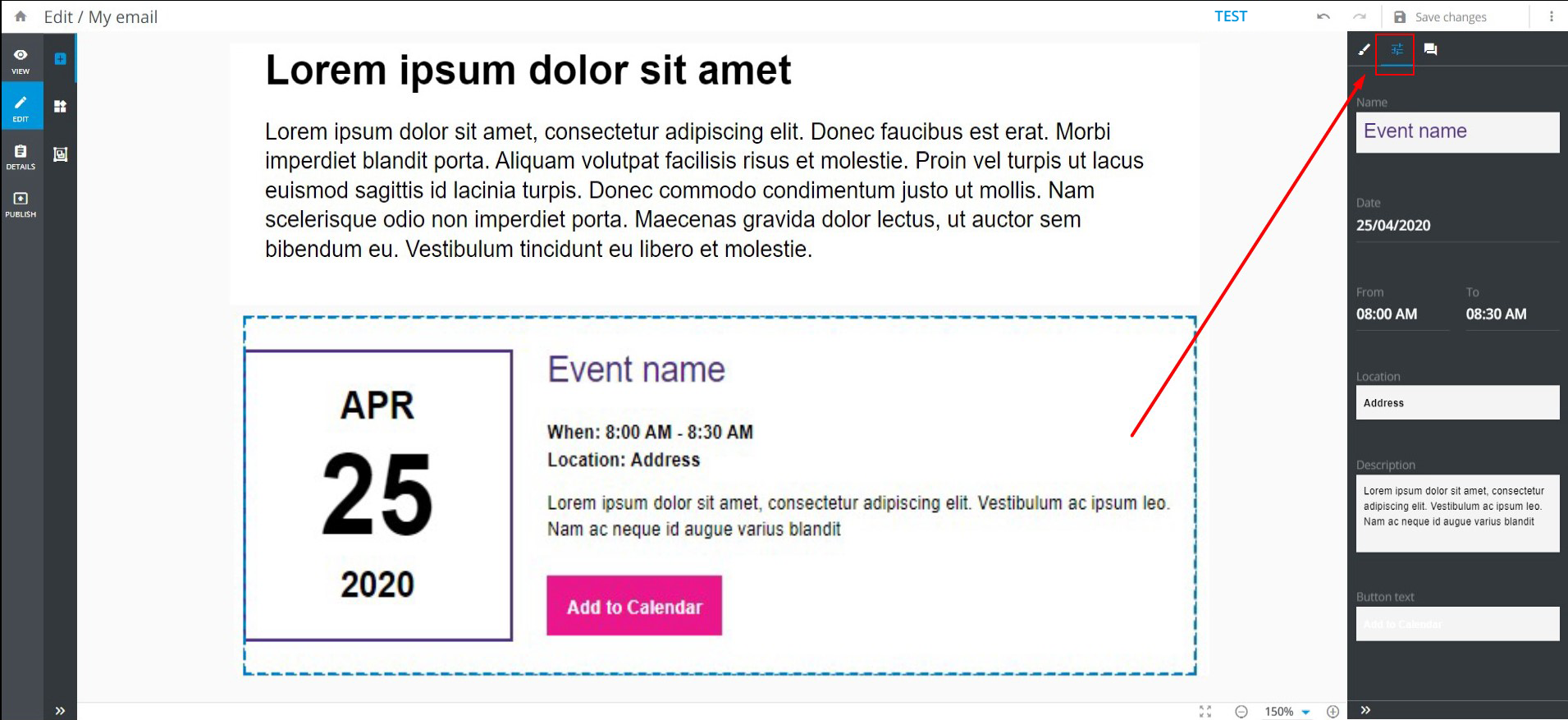 The Event invitation component allows you to add a scheduled event to the calendar.