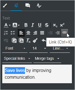 To insert a link in the text fragment: