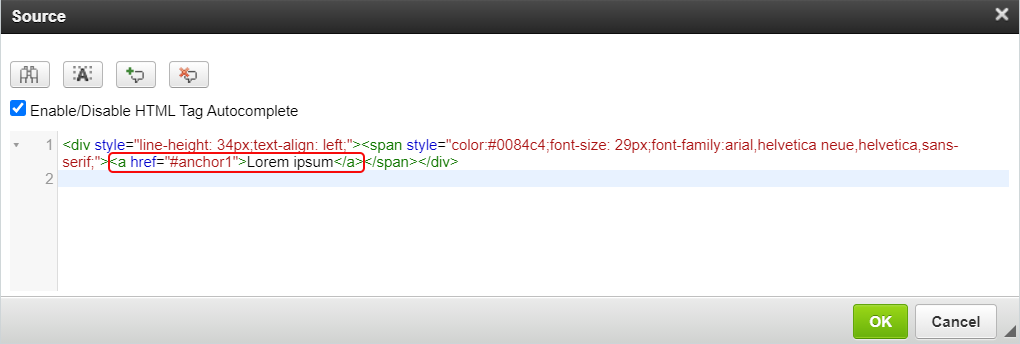 Sourcepop-up, wrap the anchor text in the<a>tag.Add the