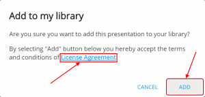 If the presentation has any License Agreement, you'll be notified when adding it: