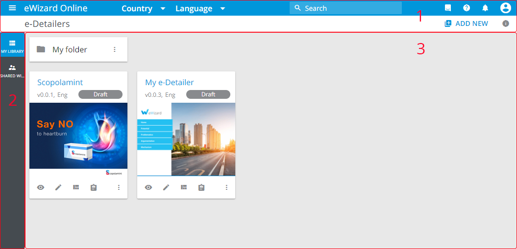 [2] The navigation bar that comprises the Library spaces available for the currently open content section.