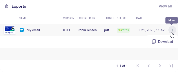 [4] The Exports widget displays up to five records per page of the content items you've exported, with the most recent ones listed first.