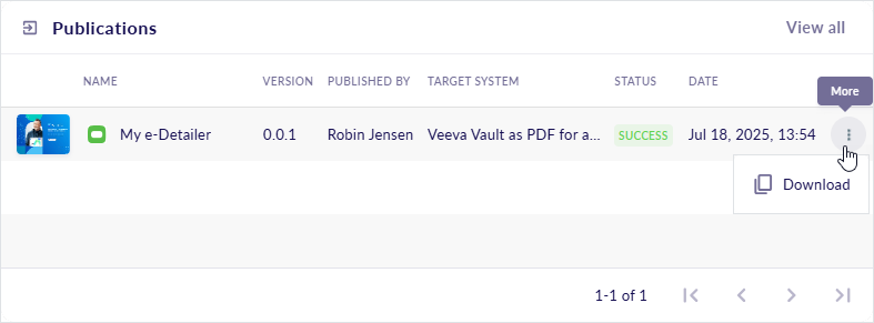 The View all button in the upper-right corner of the widget opens the PUBLISH tab in Publish manager.