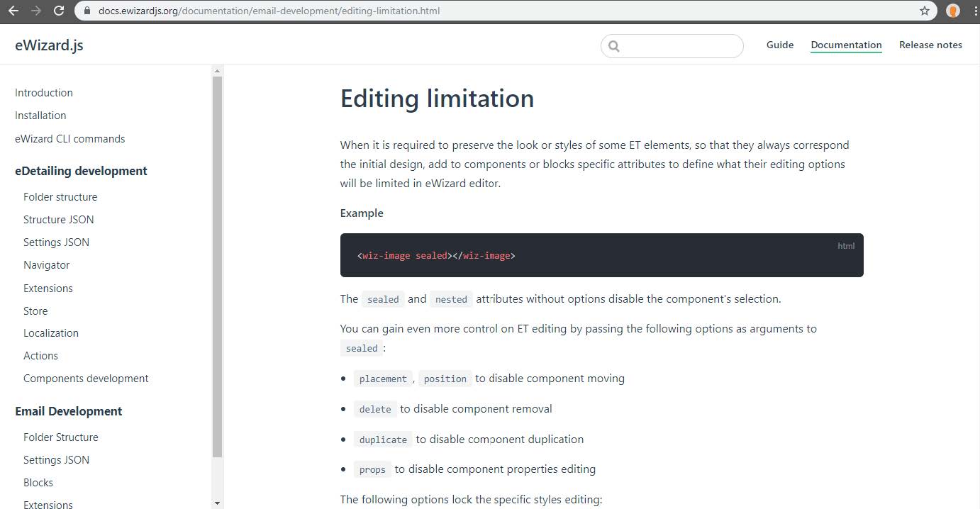 eWizard platform provides a wide editing capabilities for its components and bocks. To restrict a specific editing capability only, the sealed attribute should be supplemented with appropriative options.