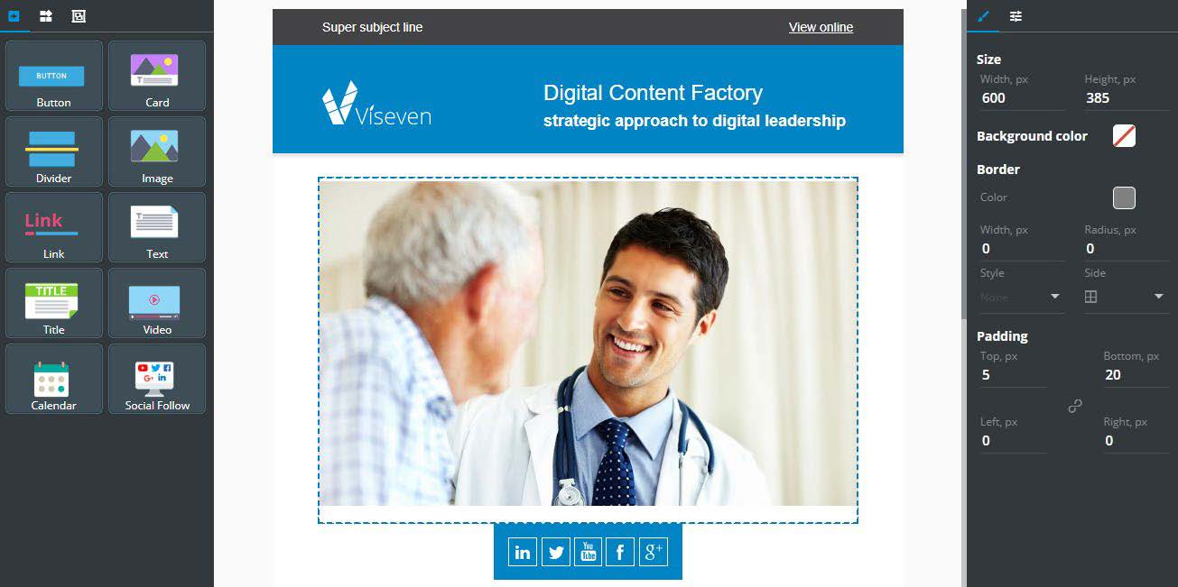 Sometimes there is a need to restrict editing capabilities for some components or blocks in the email. Such possibility is especially useful while developing an Email Template that will be used as a Master Template and will be used by a lot users. You can restrict editing possibilities for certain elements to preserve initial design of ET so it always correspond to design of Master version or your own technical requirements it. Also it is recommended to discuss with customers which elements should be locked for editing.