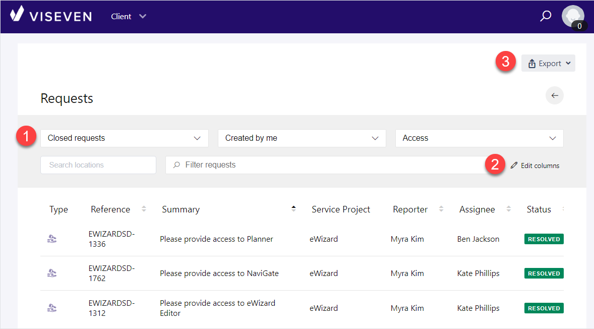 [3]: Export the CSV file with all existing or current (filtered) requests to your device.