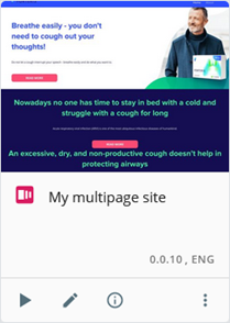 The multipage site card features its preview, name, version, and language.